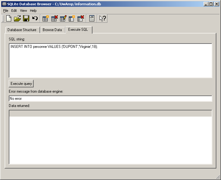 Remarque : l'onglet Execute SQL d'UwAmp permet d'exécuter une seule ligne SQL à la fois.