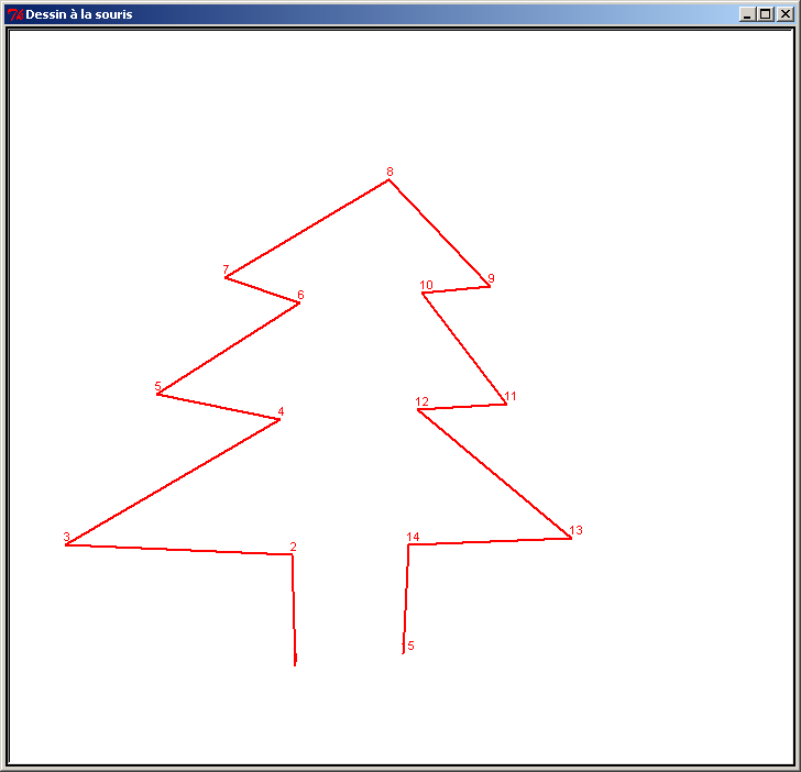 Un autre exemple : on trace un dessin trait par trait en cliquant simplement avec la souris. Dans le programme suivant :