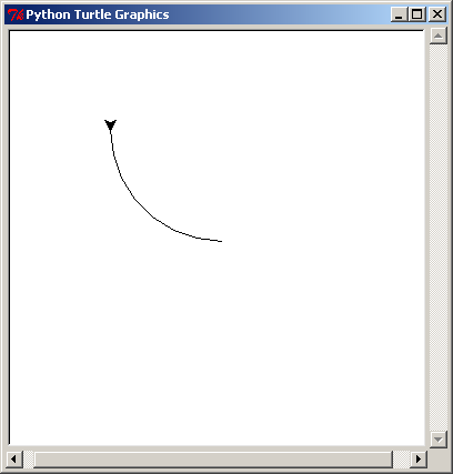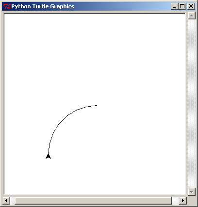 Le curseur de la tortue effectue alors une rotation de 90° vers la gauche :