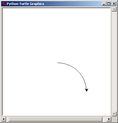Remarque : dans la fonction circle le rayon comme l'angle peuvent être soit positif soit négatif. Celà donne 4 possibilités pour tracer un arc de cercle. Par exemple pour tracer un arc de cercle de rayon 100 et d'angle 90° (un quart de cercle) testez dans IPython les 4 cas suivants : circle(100,90) circle(100,-90) circle(-100,90) circle(-100,-90) Voici les résultats obtenus :