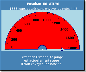■ le critère de travail : il faut envoyer au moins une note rouge pour chaque devoir ■ le critère de niveau : la moyenne des notes vertes envoyées détermine la base de la note bonus ■ le critère de quantité : il faut envoyer plus de 1000 questions vertes par semestre ■ le critère de continuité : il ne faut jamais laisser 15 jours d'inactivité sans envoi de notes ■ le critère de régularité : il faut maintenir une cadence de travail supérieure à 200 questions par semaine ■ le critère de répartition : il faut éliminer tous les thèmes oubliés et tous les thèmes incomplets ■ le critère de rapidité : il faut éviter d'envoyer la première note rouge d'un devoir parmi les derniers |
