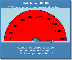 ■ le critère de travail : il faut envoyer au moins une note rouge pour chaque devoir ■ le critère de niveau : la moyenne des notes vertes envoyées détermine la base de la note bonus ■ le critère de quantité : il faut envoyer plus de 1000 questions vertes par semestre ■ le critère de continuité : il ne faut jamais laisser 15 jours d'inactivité sans envoi de notes ■ le critère de régularité : il faut maintenir une cadence de travail supérieure à 200 questions par semaine ■ le critère de répartition : il faut éliminer tous les thèmes oubliés et tous les thèmes incomplets ■ le critère de rapidité : il faut éviter d'envoyer la première note rouge d'un devoir parmi les derniers |