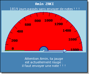 ■ le critère de travail : il faut envoyer au moins une note rouge pour chaque devoir ■ le critère de niveau : la moyenne des notes vertes envoyées détermine la base de la note bonus ■ le critère de quantité : il faut envoyer plus de 1000 questions vertes par semestre ■ le critère de continuité : il ne faut jamais laisser 15 jours d'inactivité sans envoi de notes ■ le critère de régularité : il faut maintenir une cadence de travail supérieure à 200 questions par semaine ■ le critère de répartition : il faut éliminer tous les thèmes oubliés et tous les thèmes incomplets ■ le critère de rapidité : il faut éviter d'envoyer la première note rouge d'un devoir parmi les derniers |