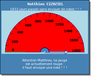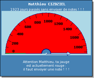 ■ le critère de travail : il faut envoyer au moins une note rouge pour chaque devoir ■ le critère de niveau : la moyenne des notes vertes envoyées détermine la base de la note bonus ■ le critère de quantité : il faut envoyer plus de 1000 questions vertes par semestre ■ le critère de continuité : il ne faut jamais laisser 15 jours d'inactivité sans envoi de notes ■ le critère de régularité : il faut maintenir une cadence de travail supérieure à 200 questions par semaine ■ le critère de répartition : il faut éliminer tous les thèmes oubliés et tous les thèmes incomplets ■ le critère de rapidité : il faut éviter d'envoyer la première note rouge d'un devoir parmi les derniers |