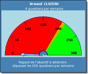 ■ le critère de travail : il faut envoyer au moins une note rouge pour chaque devoir ■ le critère de niveau : la moyenne des notes vertes envoyées détermine la base de la note bonus ■ le critère de quantité : il faut envoyer plus de 1000 questions vertes par semestre ■ le critère de continuité : il ne faut jamais laisser 15 jours d'inactivité sans envoi de notes ■ le critère de régularité : il faut maintenir une cadence de travail supérieure à 200 questions par semaine ■ le critère de répartition : il faut éliminer tous les thèmes oubliés et tous les thèmes incomplets ■ le critère de rapidité : il faut éviter d'envoyer la première note rouge d'un devoir parmi les derniers |
