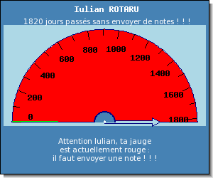 ■ le critère de travail : il faut envoyer au moins une note rouge pour chaque devoir ■ le critère de niveau : la moyenne des notes vertes envoyées détermine la base de la note bonus ■ le critère de quantité : il faut envoyer plus de 1000 questions vertes par semestre ■ le critère de continuité : il ne faut jamais laisser 15 jours d'inactivité sans envoi de notes ■ le critère de régularité : il faut maintenir une cadence de travail supérieure à 200 questions par semaine ■ le critère de répartition : il faut éliminer tous les thèmes oubliés et tous les thèmes incomplets ■ le critère de rapidité : il faut éviter d'envoyer la première note rouge d'un devoir parmi les derniers |