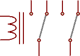 Remarque : les 3 premiers relais ne sont pas animés dans Proteus. Même s'ils passent en position de travail, leur symbole visuel restera en position de repos. Pour voir les relais chager de position il faut utiliser les composants animés RELAY et RELAY2P.