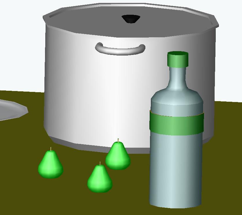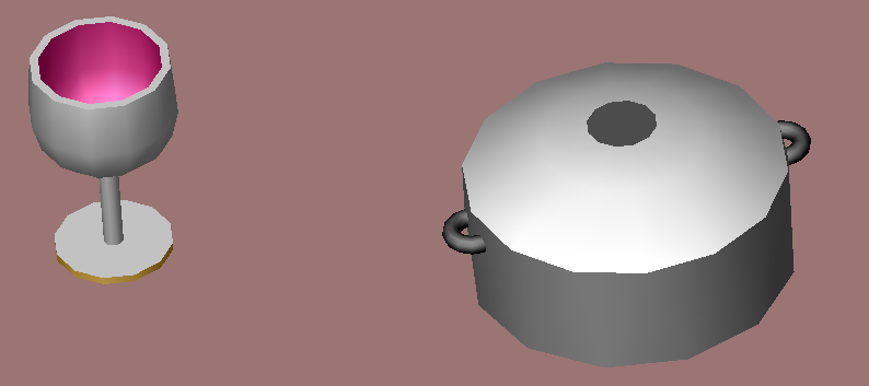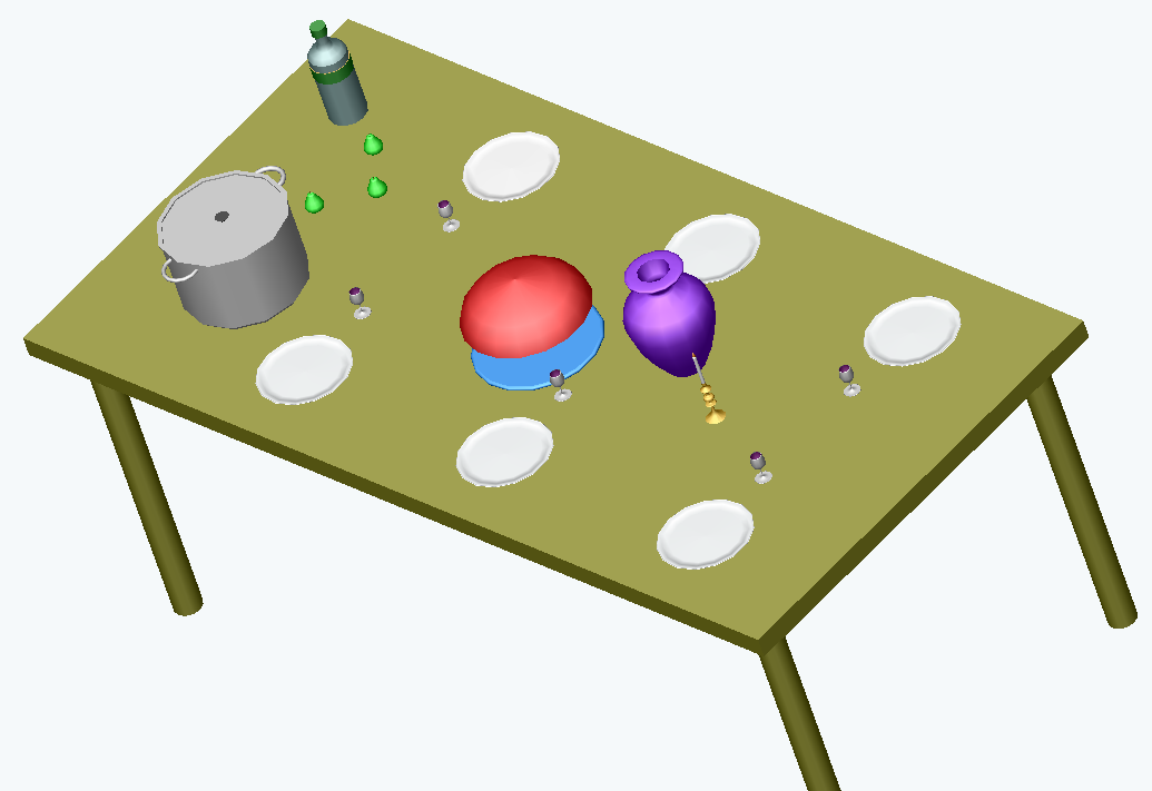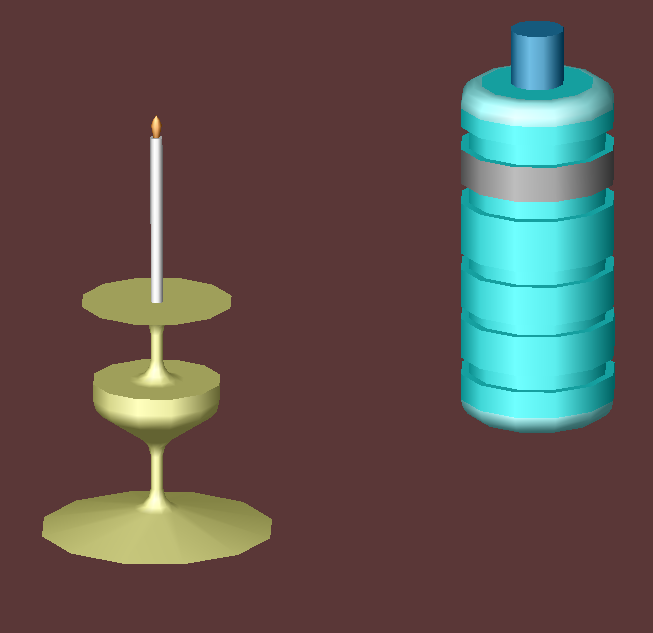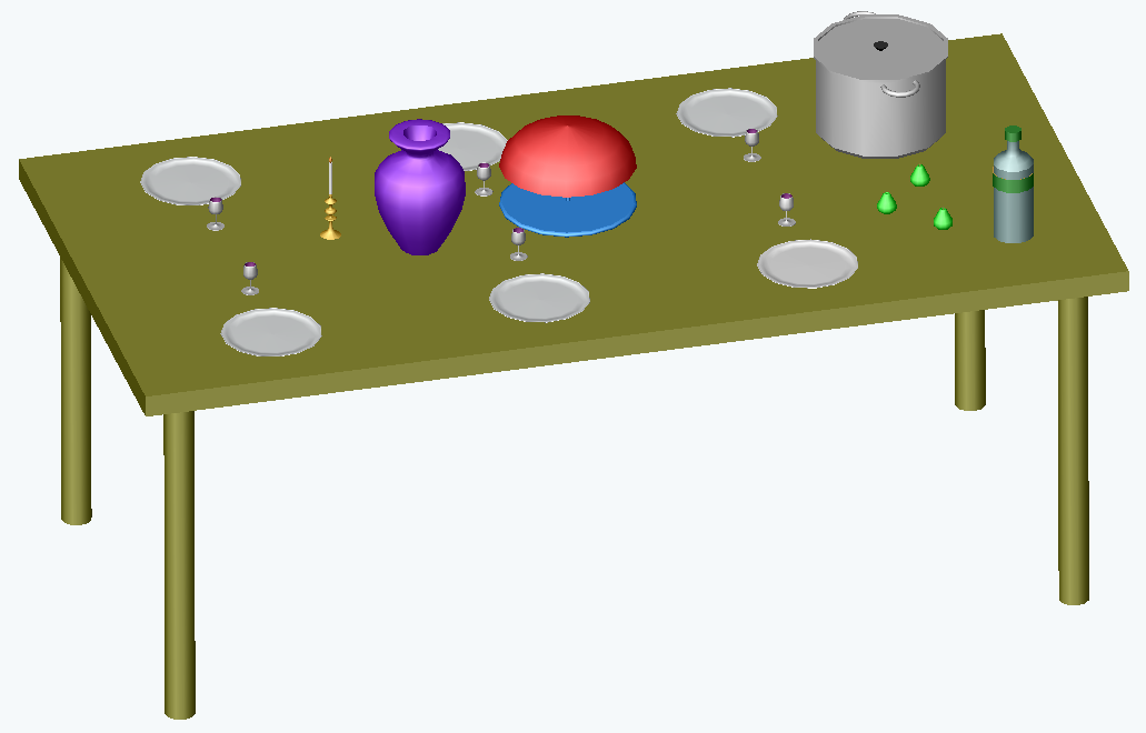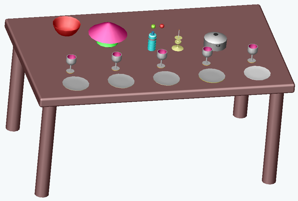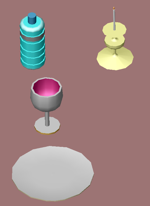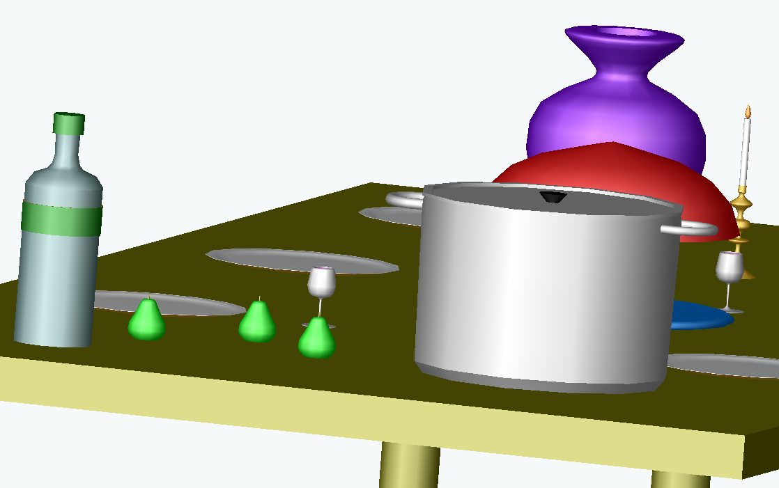 Aprés avoir posé la lampe sur une table, ajoutez sur la table différents objets circulaires créés par révolution comme par exemple :